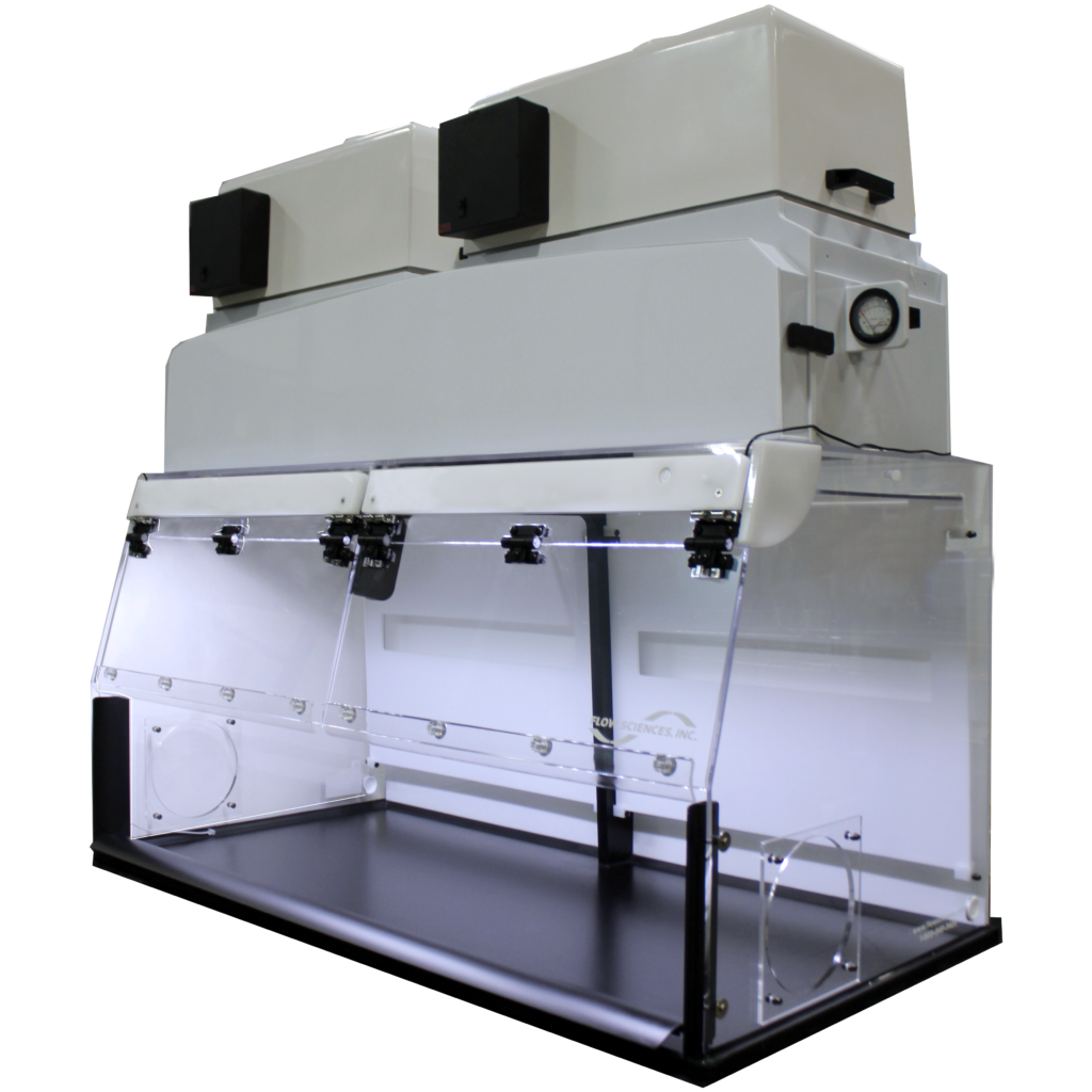 Flow Sciences HEPA filters are rated for 4–5 years of service life under normal operating conditions, significantly reducing long-term maintenance costs compared to shorter-life alternatives. Filter replacement is performed using a bag-in/bag-out (BIBO) procedure on dual-HEPA configurations, protecting maintenance personnel from contaminated filter media during changeout.